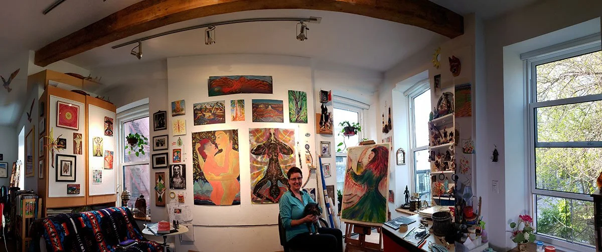 When I first met my husband, he asked me what I wanted in a life partner, and I said, “someone to have adventures with”. Little did I know! I have been fortunate to be able to paint in many wild places, from Antarctica to Kyrgyzstan, from Central Turkey to high up in the mountains in British Columbia. I was artist-in-residence in Death Valley National Park three times, and out of that art grew my first children’s book Welcome to Death Valley, a Guided Tour of Death Valley National Park, - of course narrated by two ravens. I was artist in residence at Weir Farm National Historic Site, Babayan Cultural Center in Cappadocia, Hanksville Elementary School in Utah, the Luminous Bodies Residency at Artscape Gibraltar Point in Toronto. I had a blast being a teaching artist-in-residence at the Omega Institute for 14 years, and I was honored to teach “Creating Your Own Deity” at the Rubin Museum of Himalayan Art and at the Chapel of Sacred Mirrors. I taught Drawing Belly Dance at the Art Students League of New York, working with some fabulous dancers. (I have studied Belly Dance myself and performed and taught).
